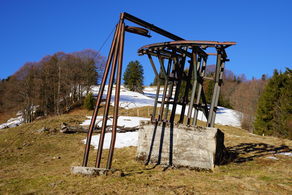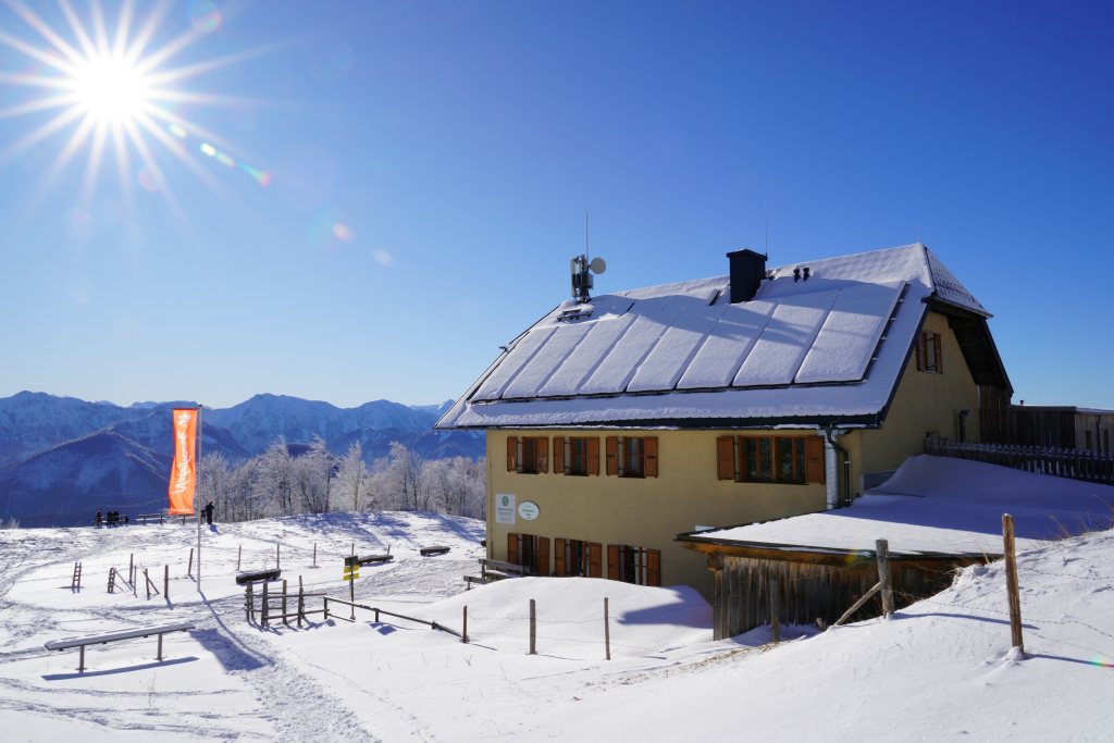Wie letzte Woche beschlossen, wandere ich heute vom Klausriegler auf den Schoberstein. Das Ennstal ist eine mir völlig unbekannte Gegend und ich bin erstaunt, wie hoch der ehemalige Gasthof Klausriegler liegt. Vom Neuschnee der letzten Woche ist nichts mehr übrig und ich befürchte schon eine Gatschpartie. Doch der Boden ist durchgefroren und kompakt, was bei diesem nordseitigen Aufstieg von Vorteil ist. Der Weg verläuft anfangs meist im Wald, ist aber kurzweilig. Bei einer Weide mit kunstvoll geschnitztem Brunnentrog lege ich eine kurze Pause ein. Aber es ist kalt und ich erhöhe das Schritttempo, um bald in den Genuss von Sonnenschein zu kommen, der mich bei der Graumandlalm dann auch erreicht. Hier gibt es ein schönes Aussichtsbankerl, das zu einer kleinen Rast einlädt. Auf der Alm finden sich auch noch alte Liftstützen, der 1986 errichteten Materialseilbahn, die vom Klausriegler zum Schobersteinhaus führte. Die Straße bis zum Schutzhaus wurde erst 2002 gebaut. Es ist wieder wolkenlos und die wenigen Höhenmeter zum Schoberstein sind sehr gemütlich und aussichtsreich. Erstmals besuche ich das AV Gipfelkreuz, das sich etwas versteckt auf unbezeichneten Anhöhe abseits des Weges befindet. Wenige Minuten später erreiche ich das Schobersteinhaus, wo aufgrund des zu erwartenden Andrangs bereits die Bänke auf der Terrasse aufgebaut werden. Im Unterschied zu letzter Woche ist heute alles komplett aper. Lange sitze ich beim Schobersteinhaus und beobachte die zahlreichen Gleitschirmflieger, wie sie ihre Sportgeräte adjustieren und sich die Lüfte schwingen. Das wär definitiv nichts für mich, da ich lieber Boden unter den Füßen habe. Damit dieser Boden auch nicht auftaut, breche ich bereits um 1130 wieder auf und erreiche kaum 40 Minuten später den Ausgangspunkt. |