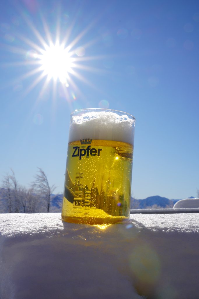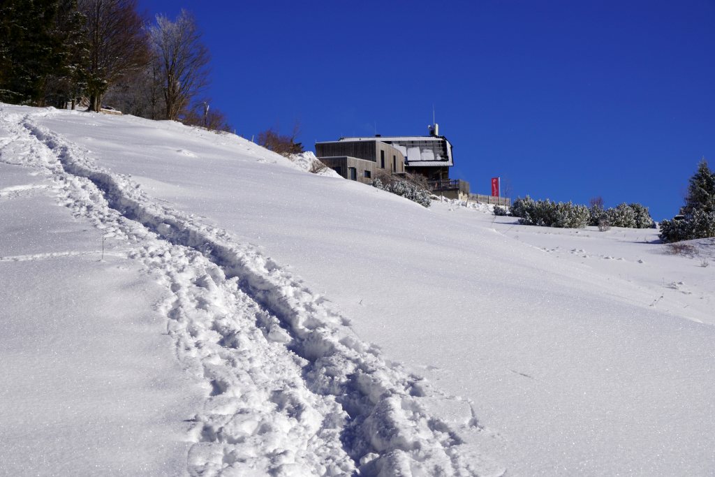 Die erste Wanderung des Jahres führt mich auf den Kleinerberg. Nach den lang ersehnten Schneefällen herrscht nun herrliches Winterwetter. Wie üblich starte ich in Muttling und folge der Forststraße, bis ich auf den markierten Wanderweg treffe. Im blattlosen Buchenwald ist es durchwegs sonnig und angenehm zu gehen. Beim Sender angelangt empfängt mich jedoch starker Wind. Die Fernsicht ist ausgezeichnet. Spektakulär sind heute Wolkenformation, die rasant über den Himmel ziehen. Die Cirrus-Wolken werden zu wunderschönen Formen zerfranst. Über dem Warschneck bildet sich langsam eine stationäre Lenticularis-Wolke. Und in Sonnennähe leuchten perlmuttfarbene Wolkenteile, die als irisierende Wolke bezeichnet werden. Lange halte ich mich jedoch nicht auf und laufe über den Aufstiegsweg retour zum Parkplatz, wo ich meinen Rucksack deponiere, um danach gemütlich zur Bergerbauern Reith zu spazieren. Dort haben es sich bereits Old Bergfexings gemütlich gemacht. An der windstillen Hauswand ist es gemütlich und wir werden von Veronika ausgezeichnet bewirtet. |