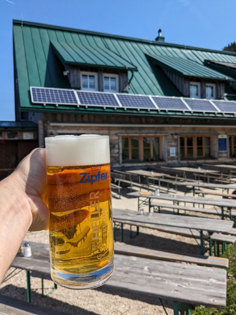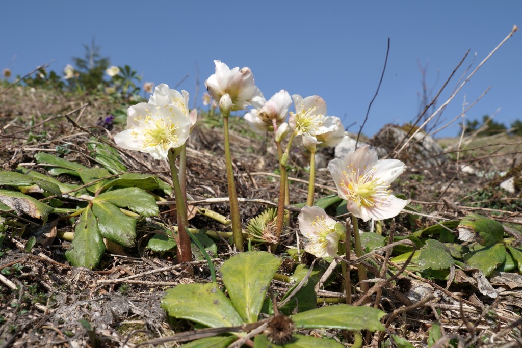 Nach kurzer Pause wandere ich am Kamm, ohne große Höhenunterschiede, hinüber zum Almkogel. Blühende Schneerosen (Helleborus niger) und Alpen-Soldanellen (Soldanella alpina) säumen den Weg. Interessant ist die unterschiedliche Vegetation links und rechts des Wegs. Während an den Osthängen Buchen (Fagus sylvatica) und später die Latschenkiefer (Pinus mugo) bis zum Kamm hochziehen, ist es an den Westhängen vorwiegend die Fichte (Picea abies). Um 1030 erreiche ich den wenig besuchten Gipfel. Die Rasen um den Almkokgel sind sehr artenreich. Unter anderem wächst hier das seltene Langblatt-Hasenohr (Bupleurum longifolium) und der Allermannsharnisch (Allium victoralis). Diese blühen im Juni/Juli. Ich mache ein paar Bilder und steige dann direkt zur Ennser Hütte ab, wo ich auch schon um 1100 eintrudle. Die Hütte ist wirklich sehr schön und hat eine tolle, aussichtsreiche Sonnenterrasse. Speis und Trank (Zipfer!) sind ebenfalls zu empfehlen. Nach der wohlverdienten Stärkung, steige ich wieder zum Bamacher ab.